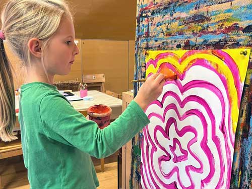 Zilly, die Zauberin begleitet uns auch noch in der Herbstwerkstatt: Das Bilderbuch „Zilly und der Riesenkürbis“ (von Korky Paul und Valerie Thomas) lädt uns ein, uns kreativ mit der vielfältigen Farbenpracht des Herbstes auseinanderzusetzen. In dieser Geschichte hat Zilly (mal wieder) Ärger mit ihrer Zauberei, doch schlussendlich wendet sich natürlich alles zum Guten.
